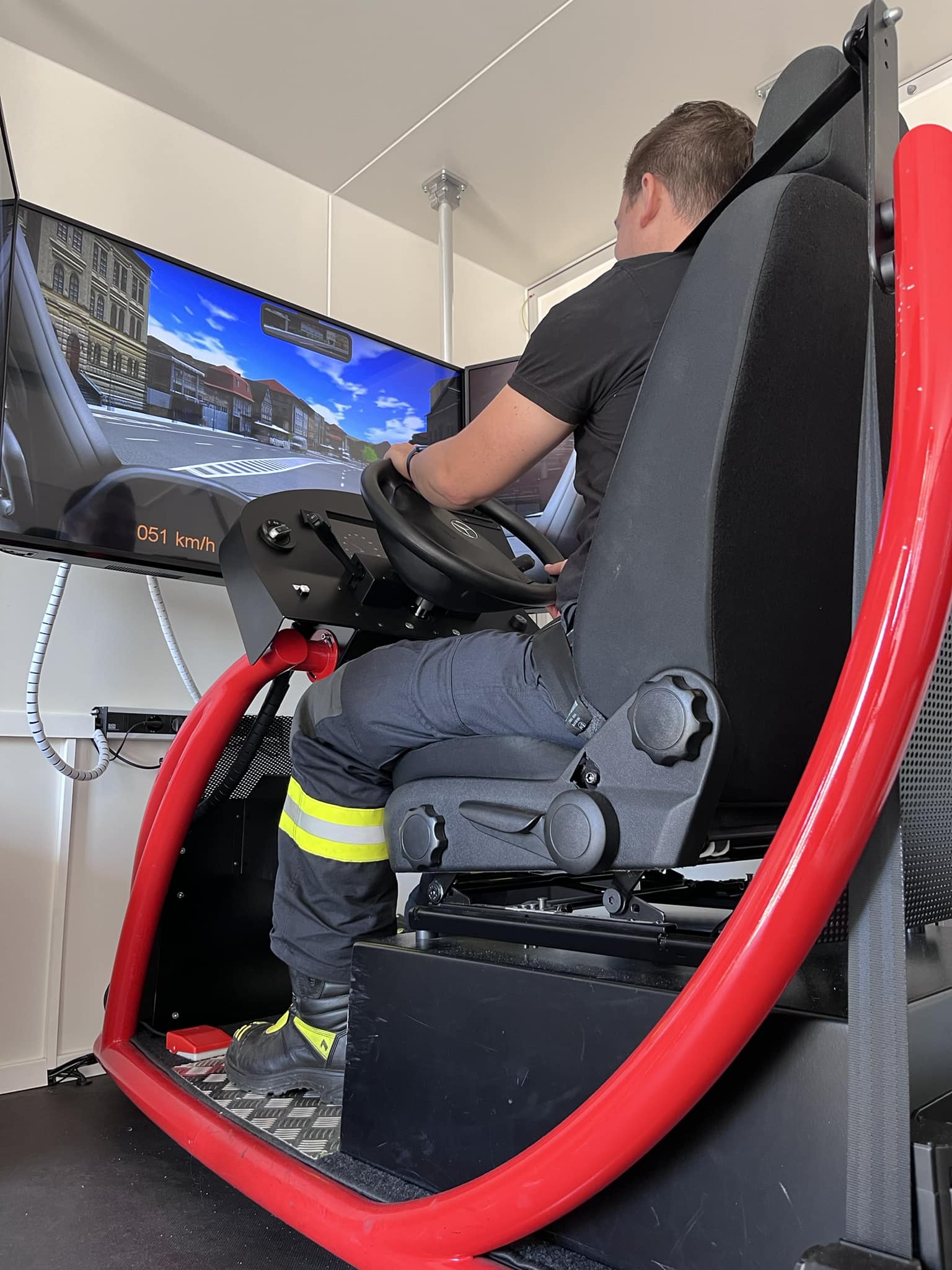 Heute nahmen unsere Kameraden Patrick, Dominik und Andreas an einer Ausbildung „Einsatzfahrtensimulator“ teil. Nach einer theoretischen Unterrichtsstunde über das Verhalten im Straßenverkehr mit Sonderrechten, ging es an die Fahrpraxis im Simulator. Jeder musste nach einer Einweisungsfahrt drei Einsatzfahrten innerorts, außerorts und auf der Autobahn absolvieren. Während der Fahrten warteten zahlreiche „Überraschungen“ auf die Fahrer.