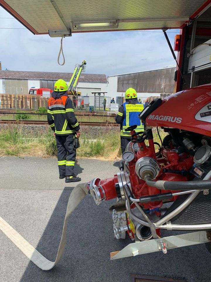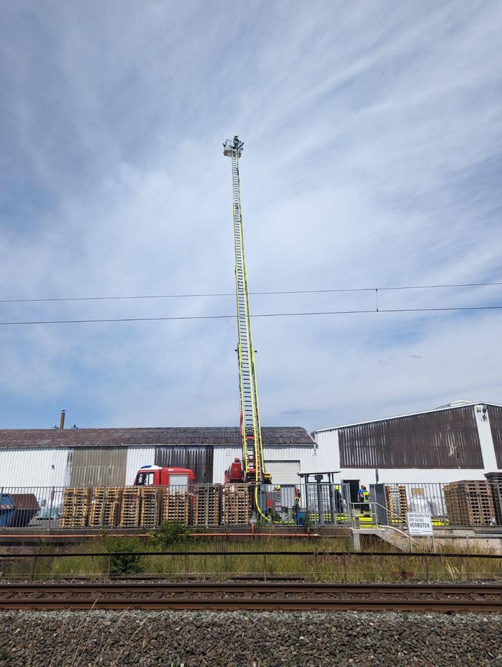 Werksgelände von Saint-Gobain alarmiert. Angenommen wurde der Brand einer Werkshalle.