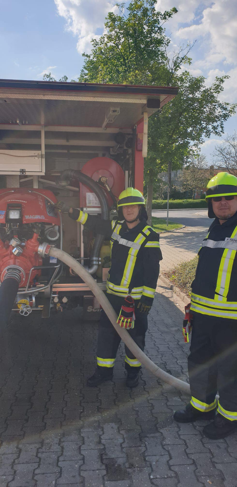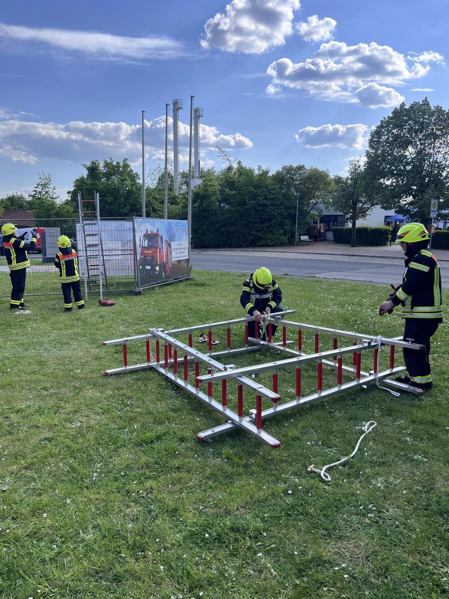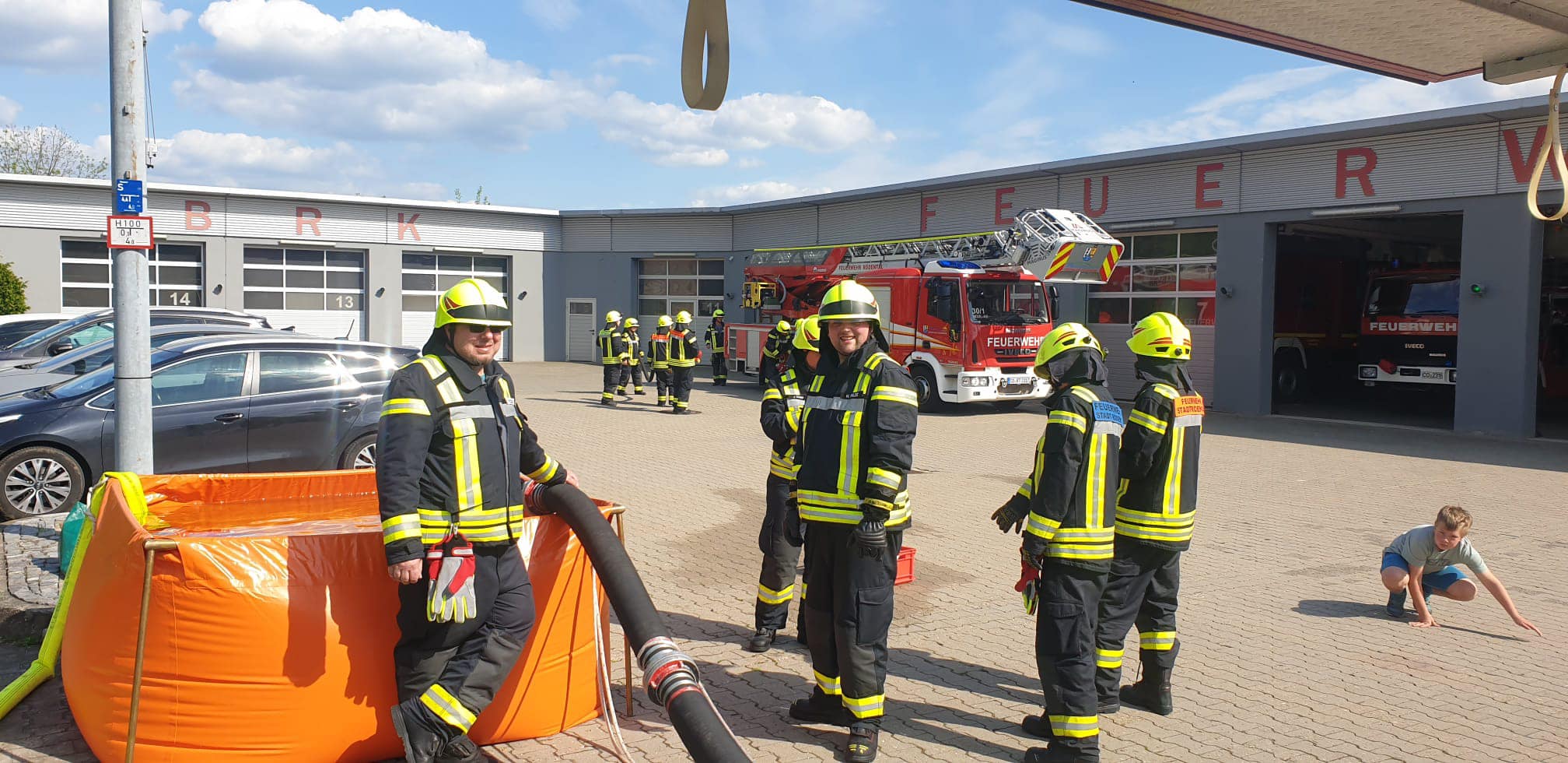 An drei Stationen trainierten unsere Kameradinnen und Kameraden den Umgang mit Steckleitern, das Ansaugen aus offenen Gewässern mit einer Tragkrftspritze und den Aufbau und die Versorgung des Wenderohres der Drehleiter.