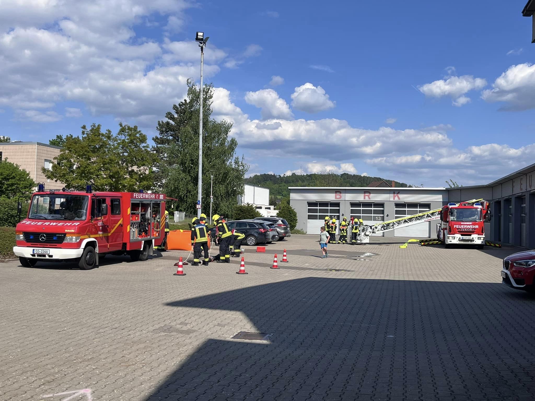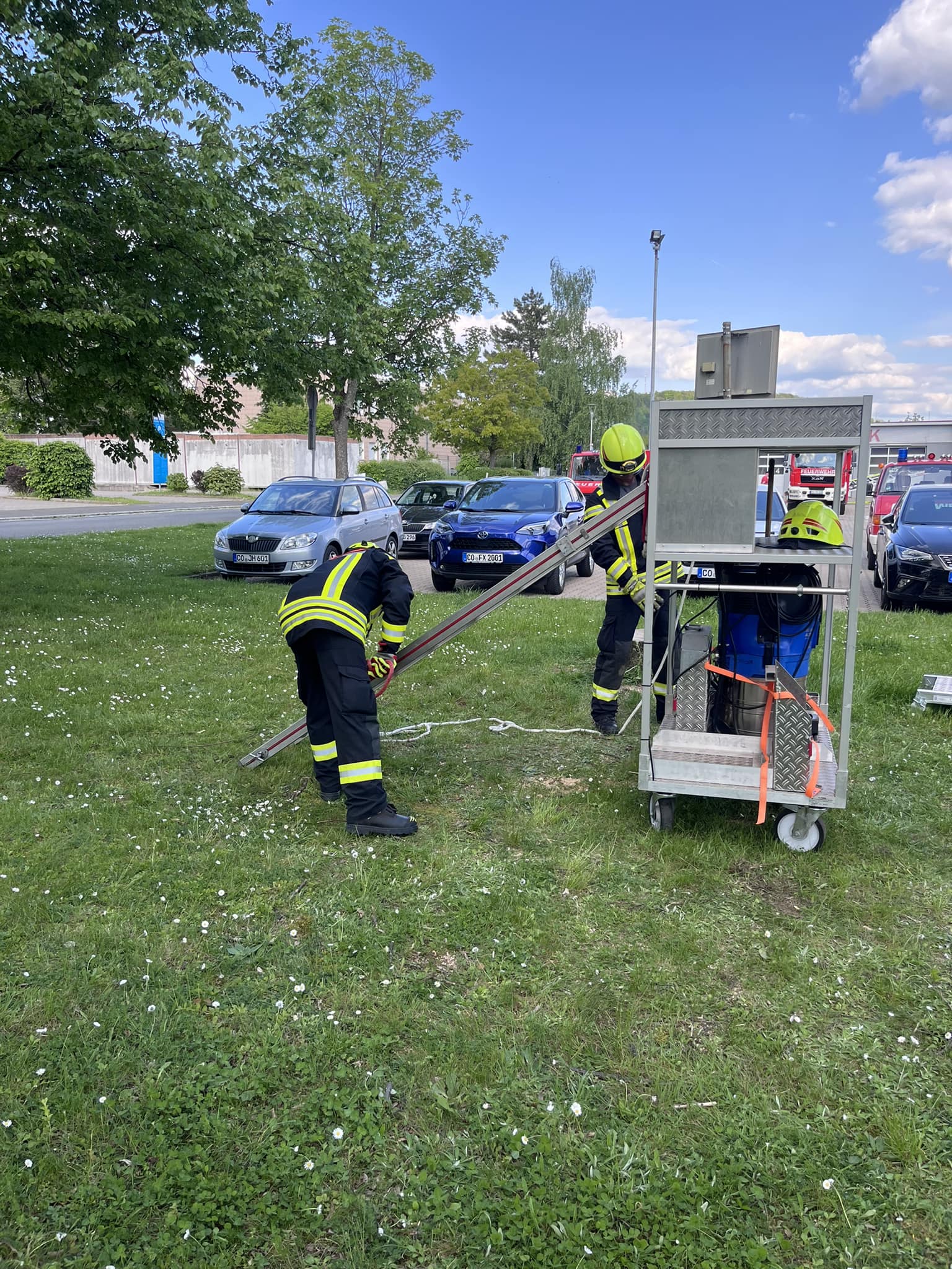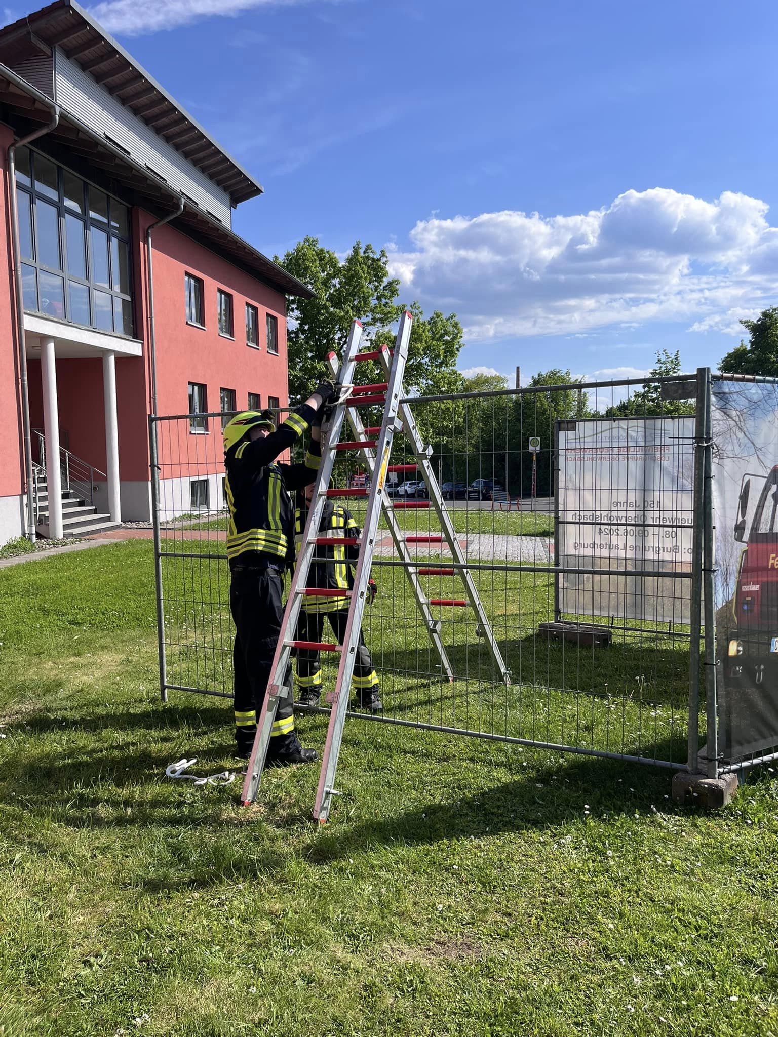 An drei Stationen trainierten unsere Kameradinnen und Kameraden den Umgang mit Steckleitern, das Ansaugen aus offenen Gewässern mit einer Tragkrftspritze und den Aufbau und die Versorgung des Wenderohres der Drehleiter.