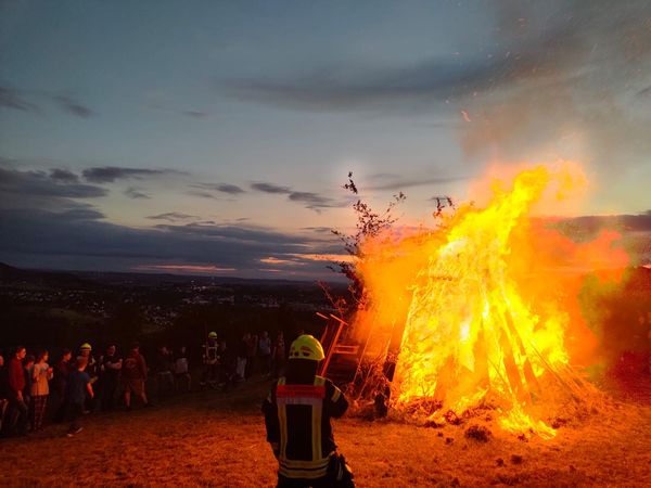 Bereits am Tag vorher bauten die Mitglieder unseres Sportvereins, dem FC-TSV Rödental einen großen Holzhaufen auf unserem Hausberg, dem Horeb auf. Nach dem Fackelzug vom Sportheim durch Rothenhof hinauf zum Berg wurde das weihin sichtbare Feuer entzündet. Unsere Löschgruppe Rothenhof sicherte den Fackelzug und den Brandplatz ab. Die zahlreichen Gäste wurde von den Sportlern bestens versorgt.
